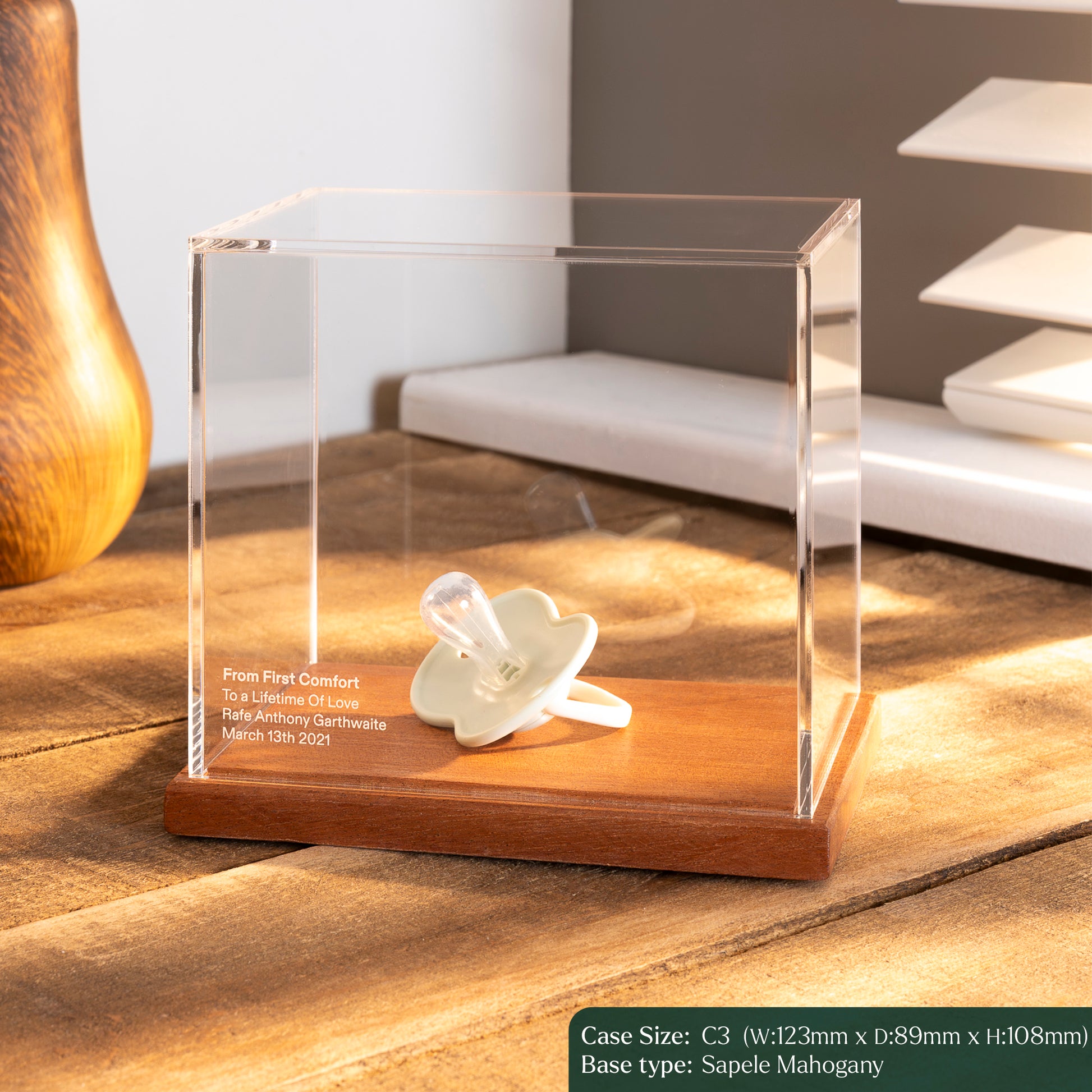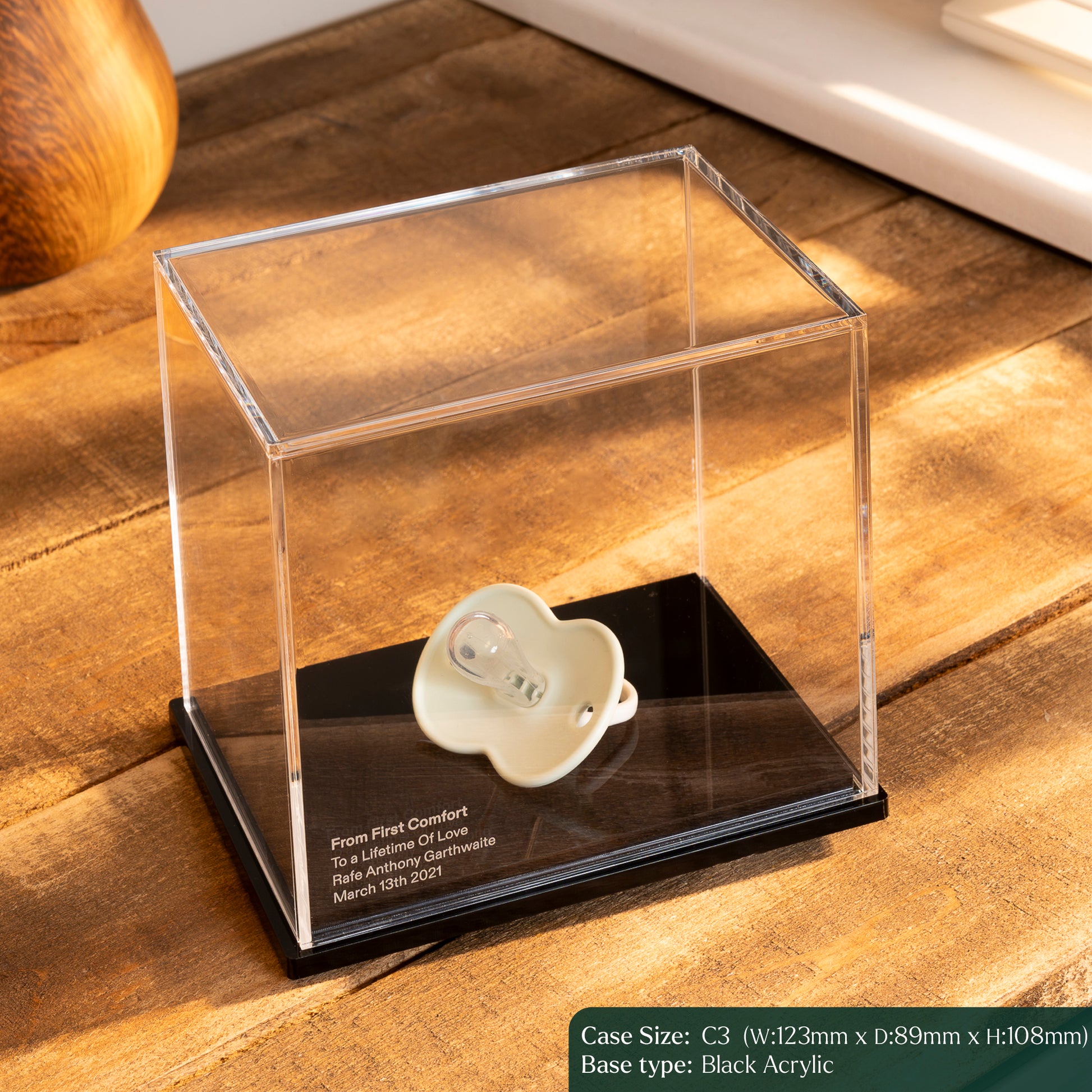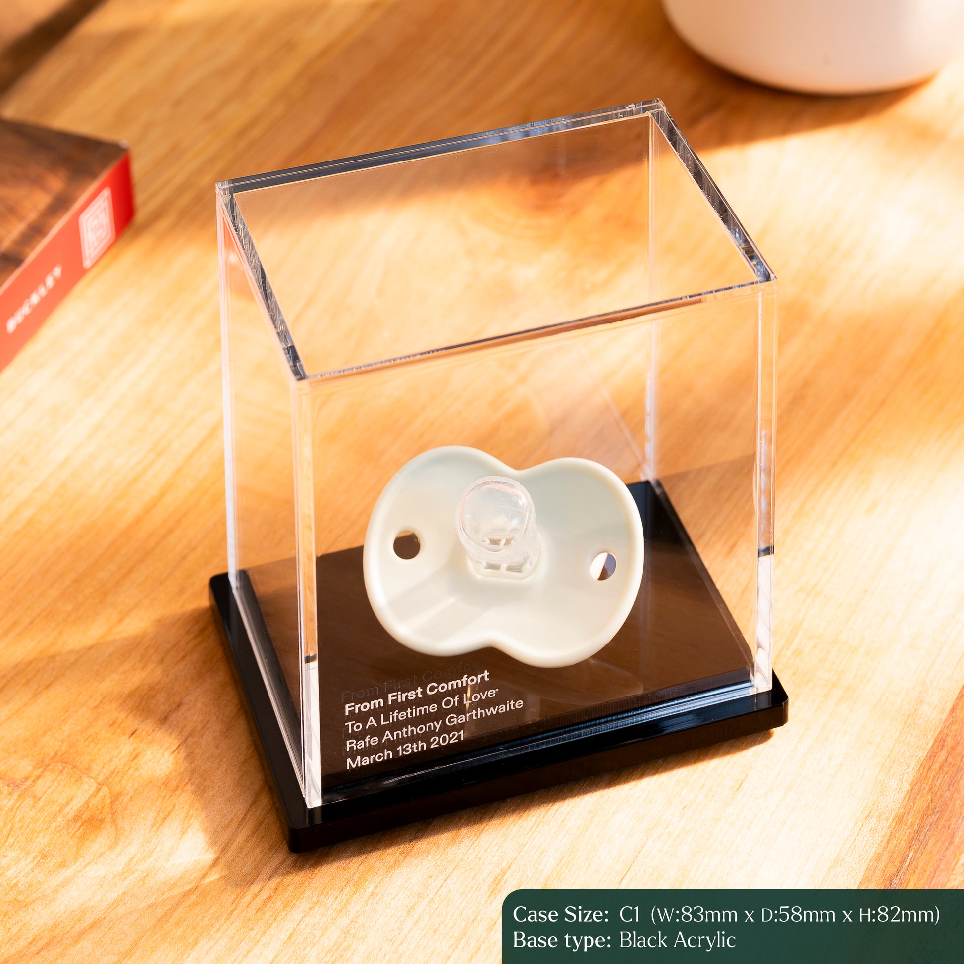 Crafted from crystal-clear acrylic, the case allows you to see every detail without distortion — while keeping precious items protected from dust, handling, and wear.