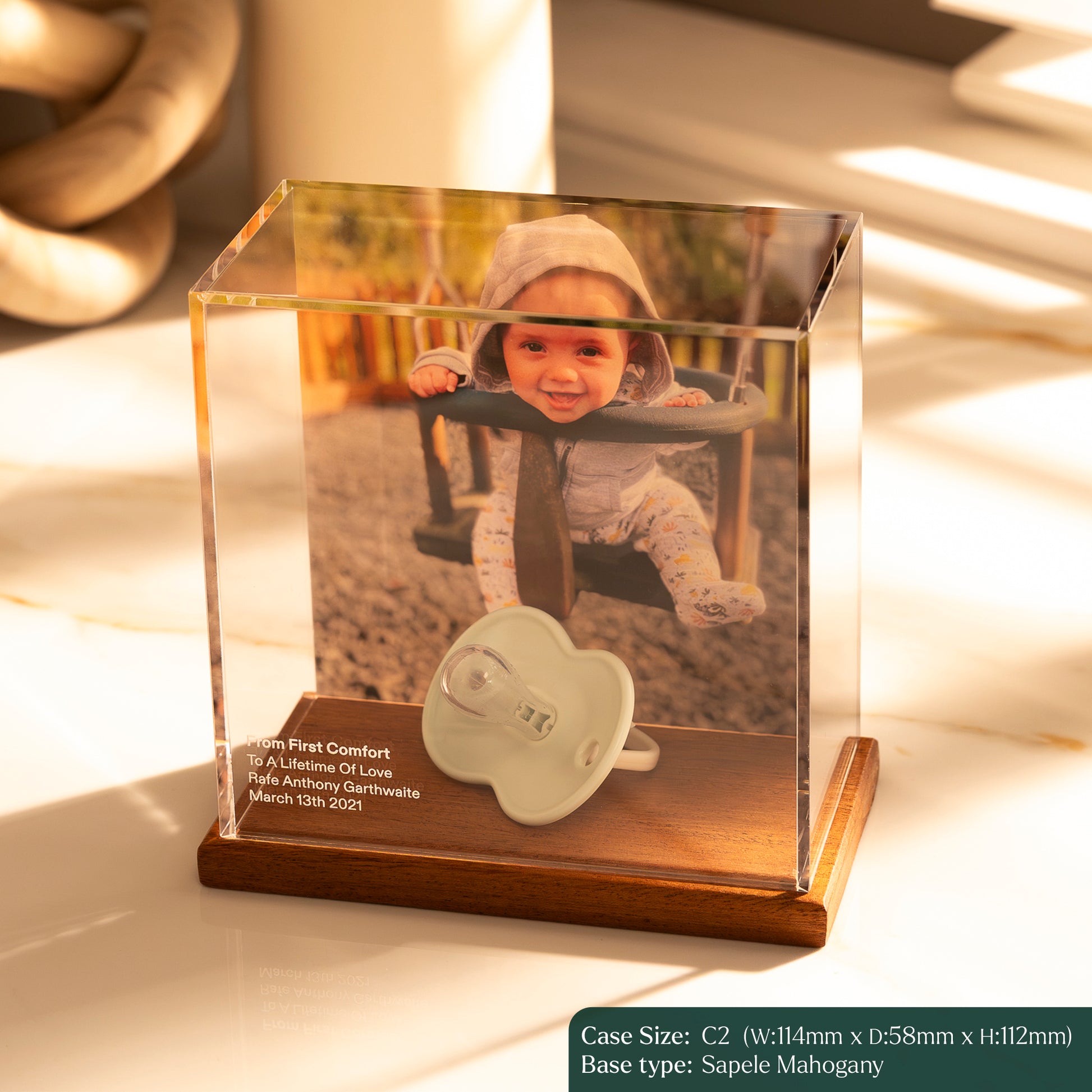 This isn't just a storage box; it is a personalized baby keepsake designed to turn fleeting moments into a lifelong gallery. Whether you are looking for the perfect baby shower gift or a way to curate your own little one's history, our display case ensures those "firsts" are never tucked away in a drawer and forgotten.