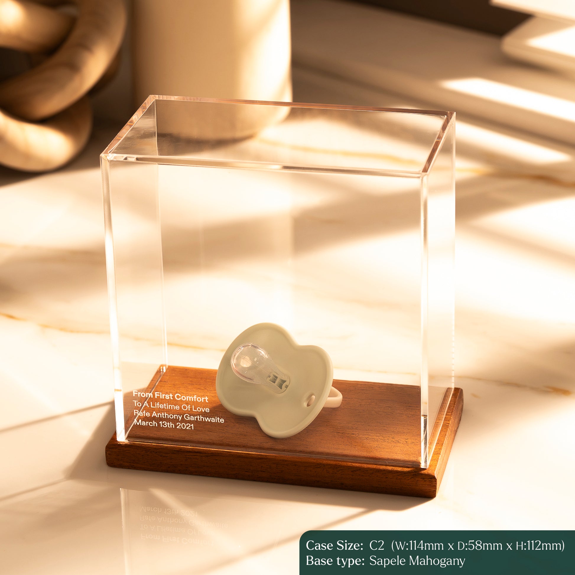 Every newborn journey is paved with tiny, significant objects. Use our premium display case to showcase: