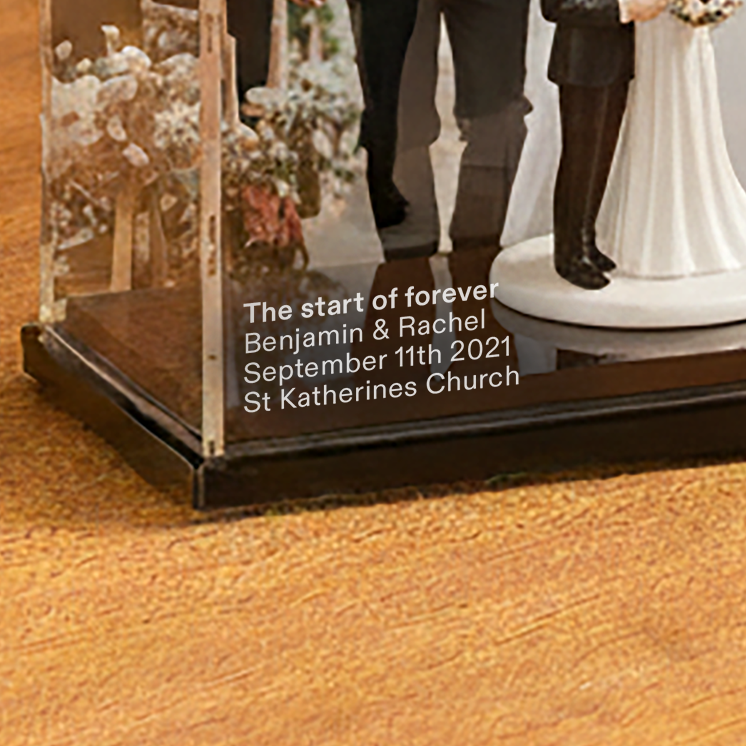 Crafted from crystal-clear acrylic, the case showcases your wedding keepsake with absolute clarity, while protecting it from dust, handling, and everyday wear.
